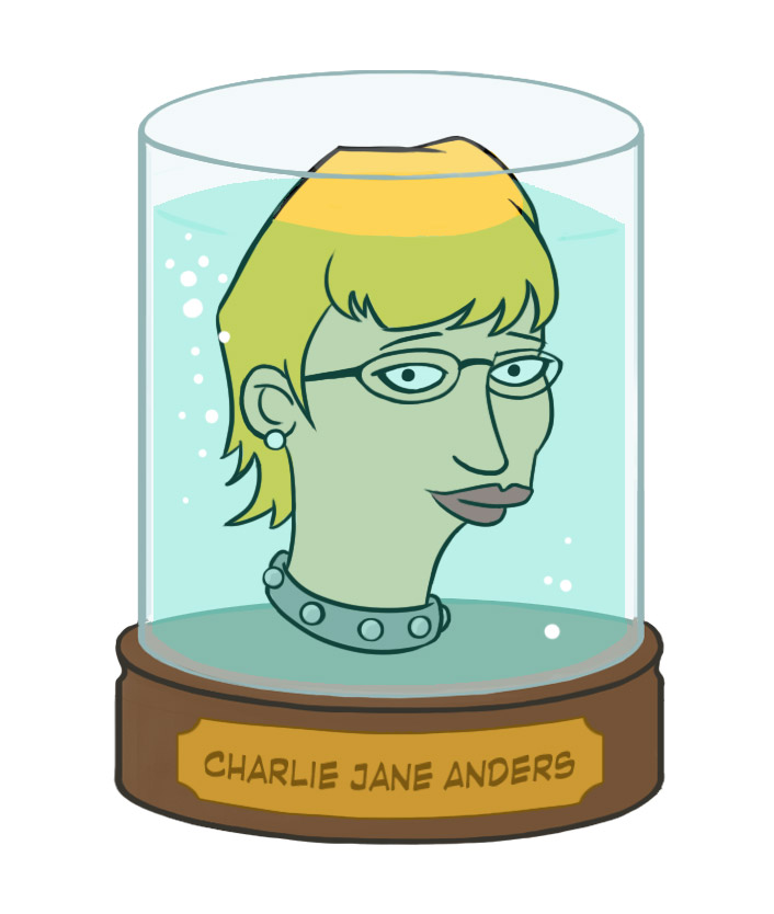 Then I decided to do people who are notable in the SFF community (it’s a short list, but only to save my sanity because otherwise I’d draw heads-in-jars forever, and I’ve put women at the top because change). Thus far, I’ve finished the head (SEE WHAT I DID THERE) editors at io9.com.