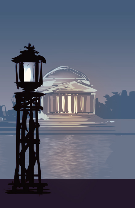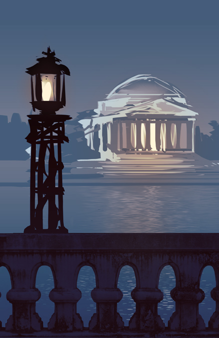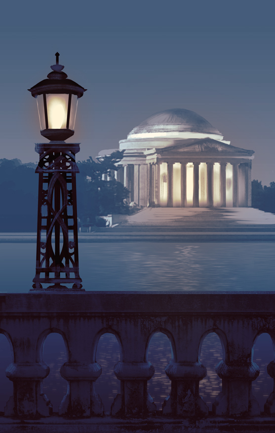 November has been a fast-moving month. MAKER SPACE is nearly finished, and is entering the edit/proof phases. In the meantime, I’ve been working with Rose Loughran, the cover artist for the Rachel Peng books. Rose and I have been kicking designs around since July. I knew the feature image for this cover would be the Jefferson Memorial at night: the design and the colors of that building are gorgeous, plus Jefferson can be considered a maker himself.
