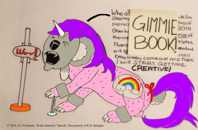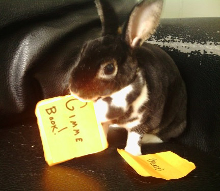 I doctored this image slightly to bring out the GIMME BOOK! Please no yelling. It’s adorable.